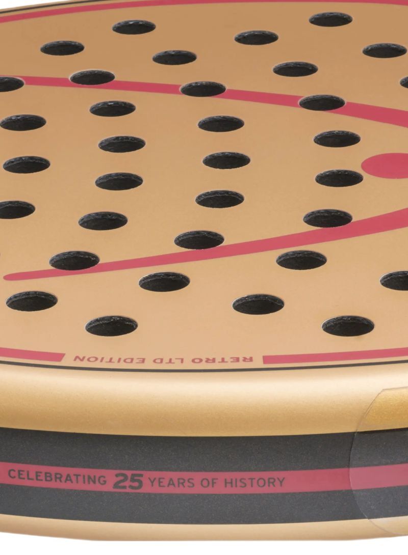 Ракетка для падел тенниса Head Elite Limited Edition 2025 — ограниченная модель, созданная по случаю 25-летия присутствия бренда Head на рынке падла. Она объединяет дизайн в ретро-стиле, вдохновленный деревянными ракетками конца прошлого века, с современными конструктивными и технологическими решениями, такими как инновационная технология Auxetic 2.0 для максимального комфорта и ощущения мяча. Ракетка Head Elite основана на признанной модели Speed Motion и отлично подходит для динамичной, всесторонней игры благодаря голове в форме капли, которая обеспечивает баланс между мощностью и контролем.