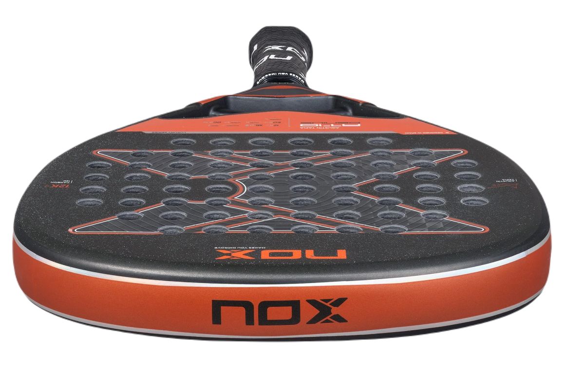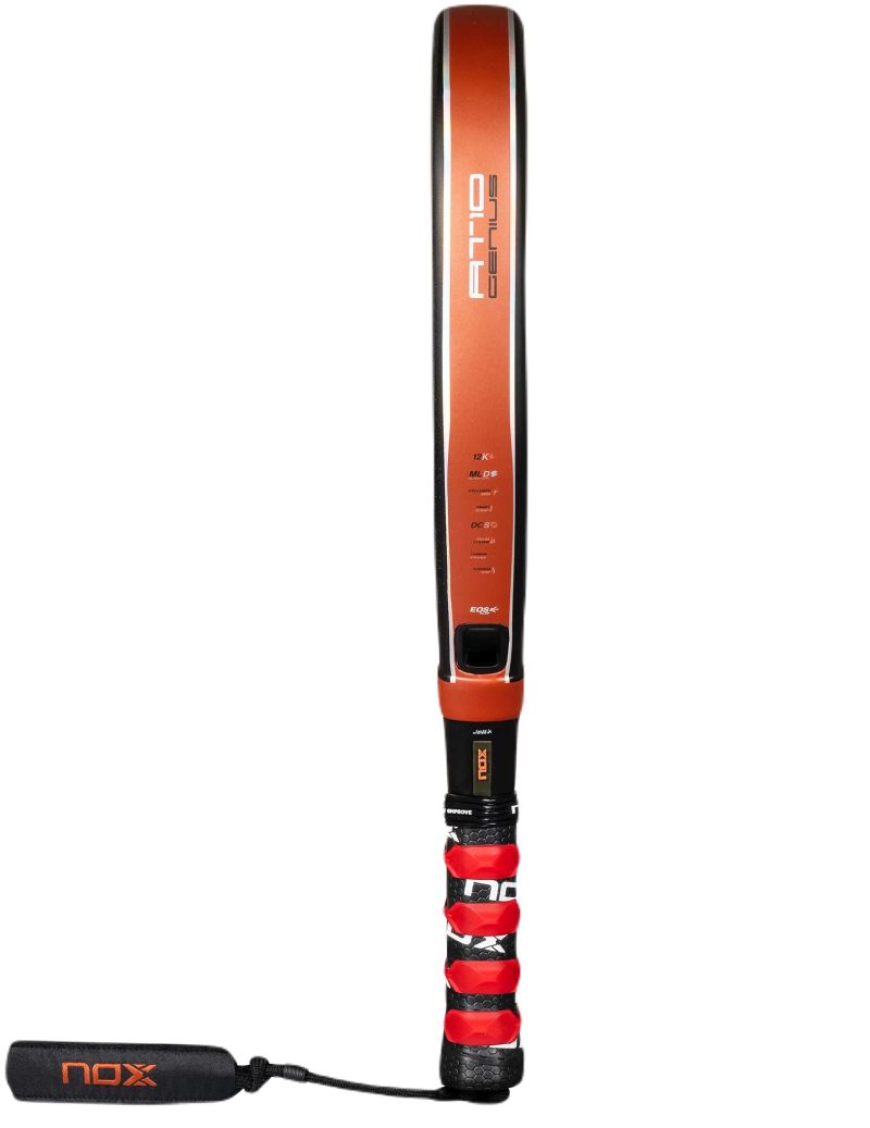 Ракетка для падел тенниса NOX AT10 Genius Attack 12K by Agustin Tapia 2025. Разработана совместно с одним из лучших паделистов мира, Agust_nem Tapia, и предназначена для продвинутых игроков с агрессивным, атакующим стилем игры. Ракетка AT10 Attack 12K обеспечит максимальную мощность при ударах с воздуха, в частности при смачах. Диамантовая головка с балансом head heavy обеспечивает отличную динамику. Рама выполнена из волокон углерода высшего качества, жестких 12K Carbon, что дополнительно увеличивает потенциал генерации мощности. Система сменных ремешков SMARTSTRAP позволит на индивидуальную персонализацию, а слегка удлиненная ручка (на 30 мм) облегчает использование двуручного хвата. Характеристика примененных технологий: • Exclusive Spin - технология, включающая два вида шероховатого покрытия поверхности головки: шестигранное, текстурированное 3D-покрытие в центре и шероховатое, песчаное на остальной части. Благодаря этой двойной шероховатости достигается больший контроль и возможность генерировать большее вращение. • DCS Dynamic Composite Structure - использование дополнительного количества материала минимизирует разницу в жесткости между рамой и поверхностью головки ракетки, что позволяет ограничить риск повреждения рамы при нецентральных ударах. • Pulse system - применение боковых резинок в грипе ракетки улучшает поглощение вибраций, передаваемых на руку, и повышает уверенность хвата. • EOS FLAP - использование в конструкции сердца ракетки боковых отверстий, увеличивающих аэродинамику и позволяющих лучше распределить вес. • Custom Grip - система, улучшающая хват ракетки, позволяет идеально адаптировать его под руку игрока, снижая риск травм, повышая комфорт игры и уменьшая вибрации. • Multilayered Black Eva - сердечник, выполненный из нескольких слоев резины EVA Black разной плотности, которые позволяют оптимально распределить энергию по поверхности ракетки, повышая динамику как атакующих, так и защитных ударов. Ракетка продается в комплекте с чехлом, имеющим лямку для ношения на спине и термоизоляционную защиту.