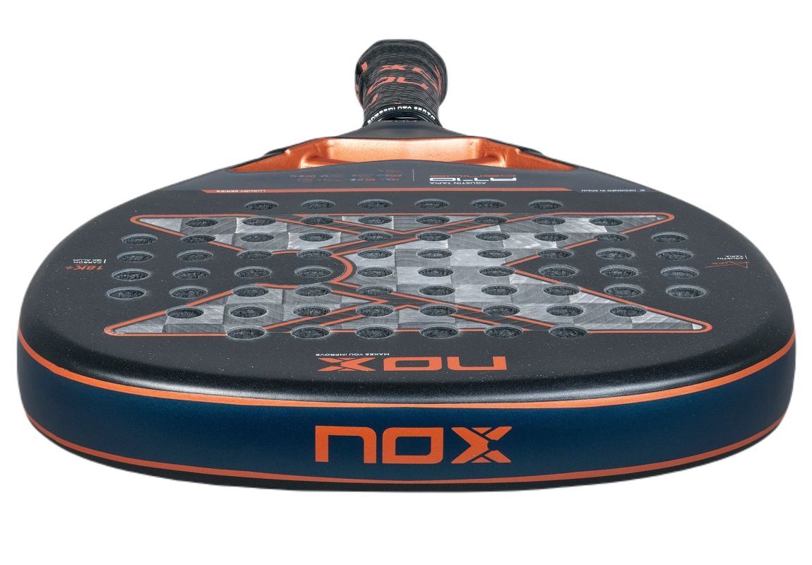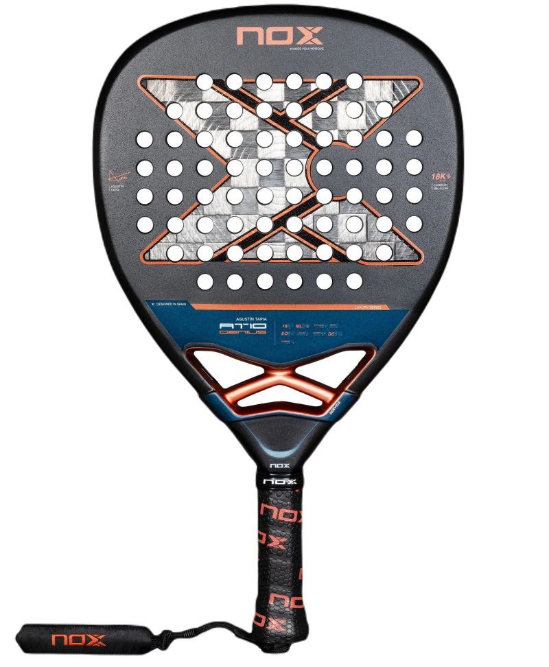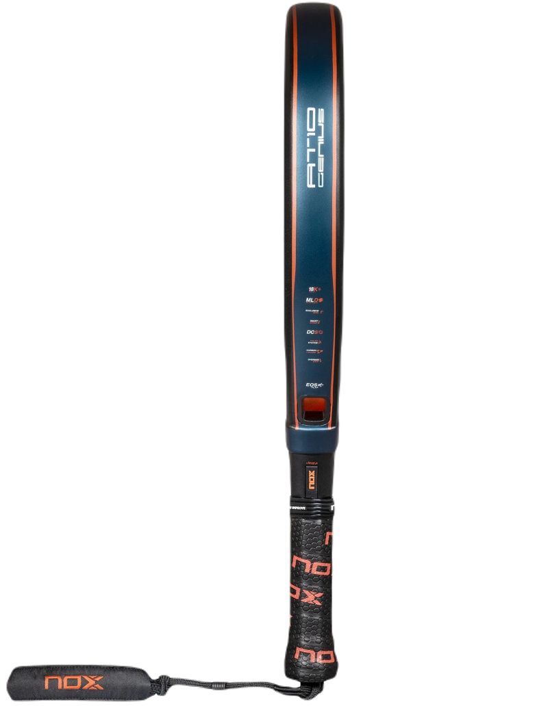 Ракетка для Padel NOX AT10 Genius Attack 18K Alum by Agustin Tapia 2025. Разработана совместно с одним из лучших паделистов мира, Агустином Тапией, и предназначена для продвинутых игроков с агрессивным, атакующим стилем игры. Ракетка AT10 Attack 18K обеспечивает максимальную мощность при ударах с воздуха, особенно при смэшах. Алмазная голова с балансом head heavy отвечает за отличную динамику. Рама изготовлена из высококачественного углеродного волокна 18K CARBON ALUM, которое благодаря алюминированию стало более гибким, чем версия 12K Carbon, предлагая лучший комфорт и ощущение, а также повышенную устойчивость к изменениям температуры. Система сменных ремешков SMARTSTRAP позволяет индивидуальную персонализацию, а слегка удлинённая ручка (на 30 мм) облегчает использование двухручного хвата. Характеристика применённых технологий: Exclusive Spin – технология, включающая два вида шероховатой отделки поверхности головы: шестиугольная текстурированная 3D отделка в центре и песчаная на остальной части. Благодаря двойной шероховатости достигается лучший контроль и возможность генерации большей вращательной силы. DCS Dynamic Composite Structure – использование дополнительного материала минимизирует разницу в жёсткости между рамой и поверхностью головы ракетки, что снижает риск повреждения рамы при нецентральном ударе. Pulse system – применение боковых резинок в грипе ракетки улучшает снижение вибраций, передаваемых на руку, и увеличивает уверенность хвата. EOS FLAP – использование в конструкции сердечника ракетки боковых отверстий, повышающих аэродинамику и позволяющих лучше распределить вес. Custom Grip – система, улучшающая хват ракетки, позволяет идеально подстроить его под руку игрока, снижая риск травм, повышая комфорт игры и уменьшая вибрации. Multilayered Black Eva – сердечник из нескольких слоёв резины EVA Black разной плотности, которые оптимально распределяют энергию по поверхности ракетки, увеличивая динамику как атакующих, так и защитных ударов. Ракетка продаётся в комплекте с чехлом, оснащённым лямкой для ношения на спине и термоизоляционной защитой.