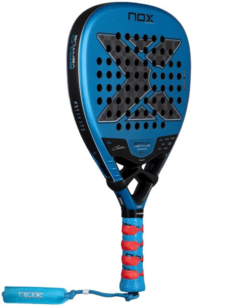 Ракетка для падел тенниса NOX EA10 Ventus Attack 12K Xtreme разработана совместно с восходящей звездой падла, Эду Алонсо, и подписана испанским игроком. Ракетка EA10 Ventus Attack с ромбовидной формой головы и балансом head heavy обеспечивает максимальную динамику удара. Благодаря этому подойдет для продвинутых игроков с отточенной техникой, которые делают ставку на быстрые и мощные удары, агрессивные подачи с высоких мячей и завершающие смэчи. Имеет раму из более жестких углеродных волокон 12K XTREME CARBON и сердцевину из отзывчивой резины, что обеспечивает более "жесткое чувство" и очень хорошую отдачу мяча. Новейшие технологические решения позволяют сохранить оптимальный комфорт игры и маневренность, а система сменных ремешков Smartstrap обеспечивает индивидуальную персонализацию этой части ракетки.