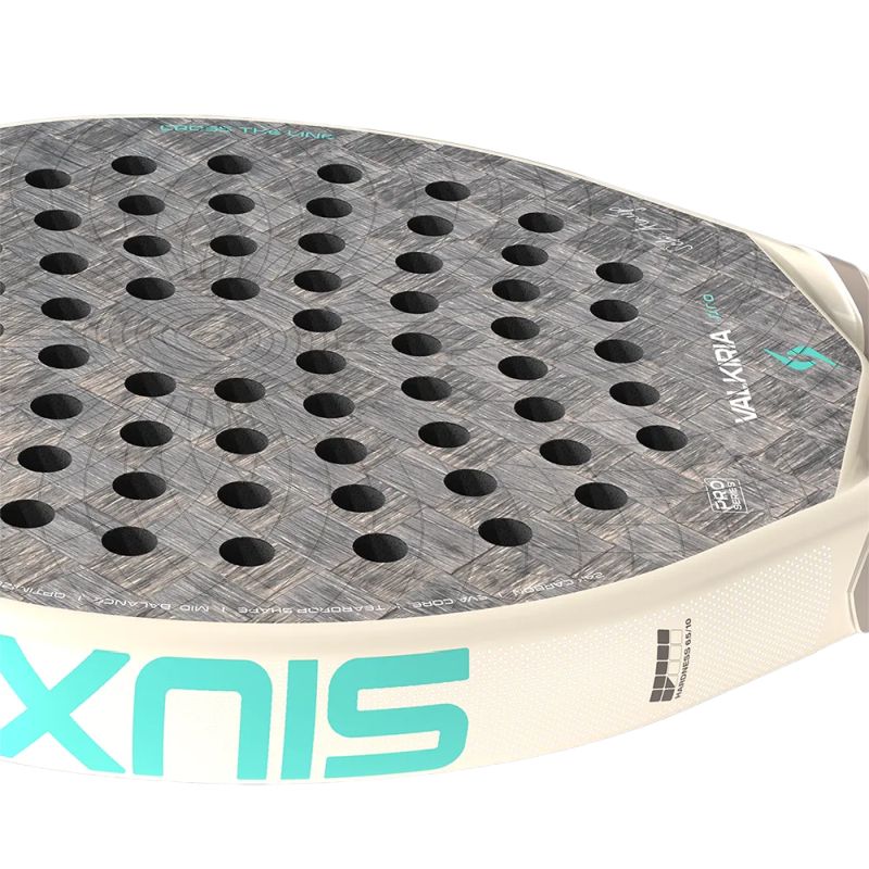 Ракетка для падел тенниса Siux Valkiria Pro 2026. Выбор одной из лучших паделисток мира, Sofii Araujo, подписанный подписью португальской спортсменки. Valkiria Pro — модель с хорошо сбалансированной универсальной характеристикой, предназначенная для продвинутых женщин или всесторонних игроков, которые ищут более маневренную ракетку. С головкой в форме слезы и средним балансом она обеспечит отличную комбинацию мощности и контроля с большим sweet spot, что позволит достичь высокой эффективности как в обороне, так и в атаке. Низкий вес облегчает молниеносные реакции у сетки и быстрое выполнение ударов в оборонительной игре или контратаке. Мягкий сердечник из пены Soft Eva повышает уровень комфорта и ощущения, а поверхность головки, выполненная из более долговечных и жестких волокон 24K Carbon, обеспечивает хорошую прочность и оптимальный отскок мяча. Кроме того, текстурированная отделка 3D Texture позволяет легче генерировать вращение.