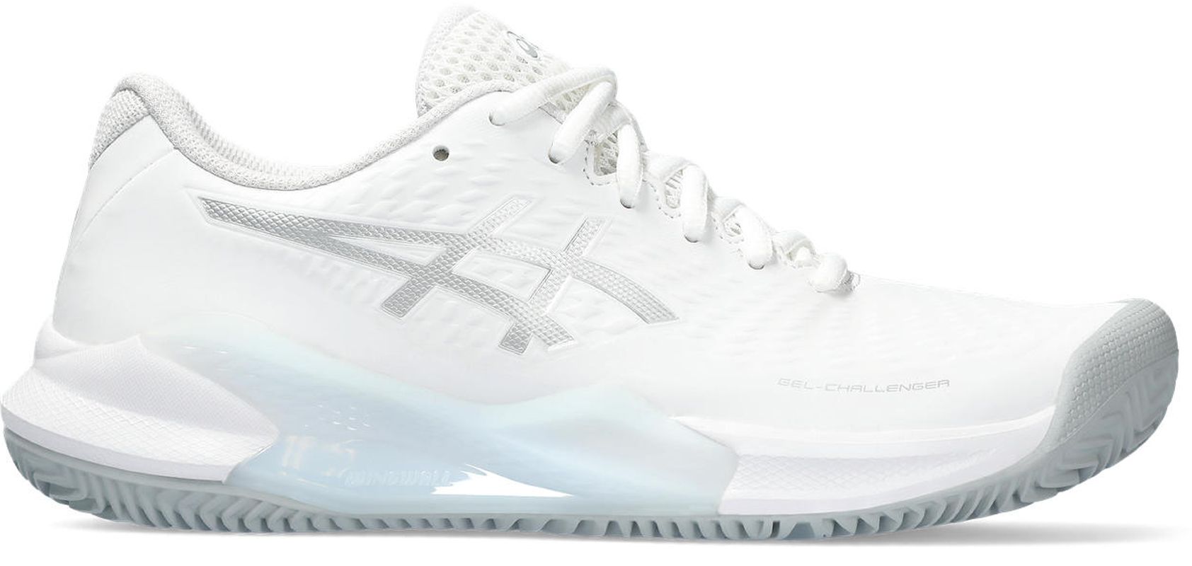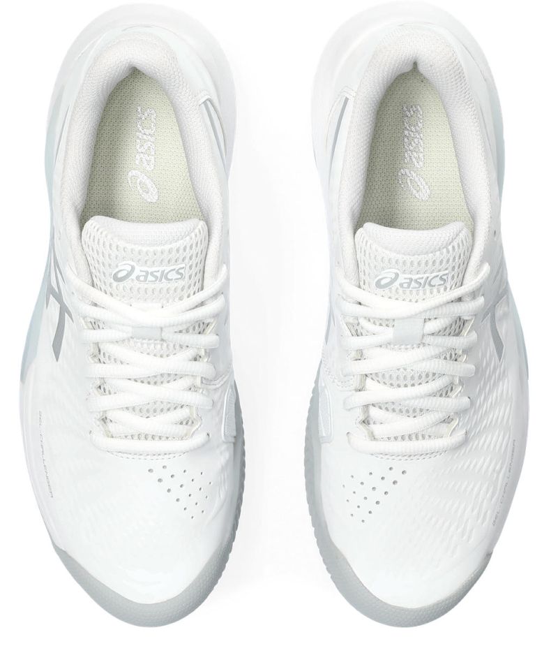 Женские теннисные кроссовки Asics Gel-Challenger 14 Clay - white/pure silver. Модель Gel-Challenger переосмыслена, сохраняя характерное для этой серии сочетание отличной стабильности с хорошей амортизацией в более легком и комфортном исполнении. Новинкой является двухслойная конструкция верха. Первый, сетчатый слой обеспечивает оптимальную воздухопроницаемость и удобство использования. Внешний слой из эластичных синтетических материалов повышает поддержку стопы и устойчивость к износу. Технология Wingwall в боковых зонах обеспечивает лучшую стабильность при боковых движениях, а система Rearfoot Gel Cushioning, расположенная под пяткой, предлагает амортизацию высшего класса. Кроссовок оснащен подошвой для игры на грунтовых кортах, выполненной из прочной резины AHAR+. Прочие примененные технологии: PGUARD, ORTHOLITE.