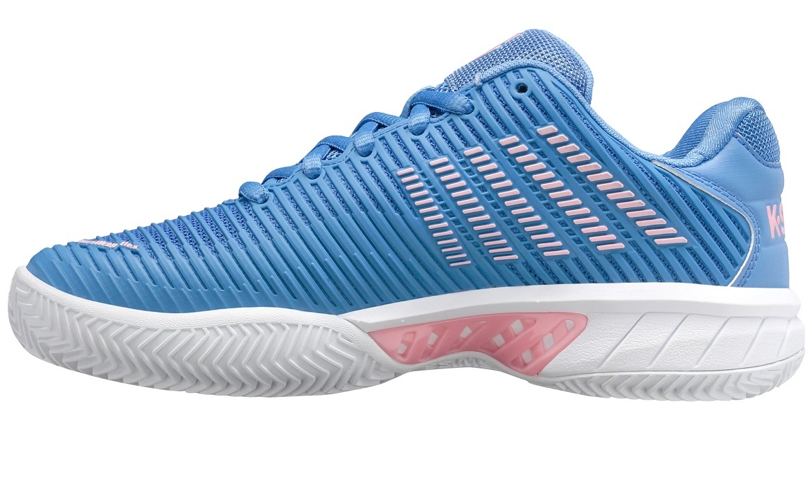 Женские теннисные кроссовки K-Swiss Hypercourt Express 2 HB Women - silver lake blue/white/orchid pink. Модель легкая и быстрая, а также предлагает большой комфорт игры. Холенище было сконструировано так, чтобы быть еще более эластичным. Одновременно обеспечивает соответствующую поддержку стопы. На сайте tennis-24.ru вы найдете эту модель, которая станет плавным переходом от предыдущей версии, поскольку обувь будет намного более комфортной, а также позволит чувствовать себя уверенно на корте. Подошва внешняя сочетает сцепление и долговечность, а также обеспечивает необыкновенную стабильность. Разработаны для амбициозных, агрессивно играющих спортсменок. Применены следующие технологии: DURAWRAP K-Swiss, AOSTA 7.0, SURGELITE, ORHOLITE.