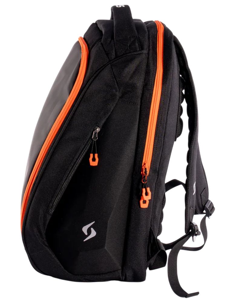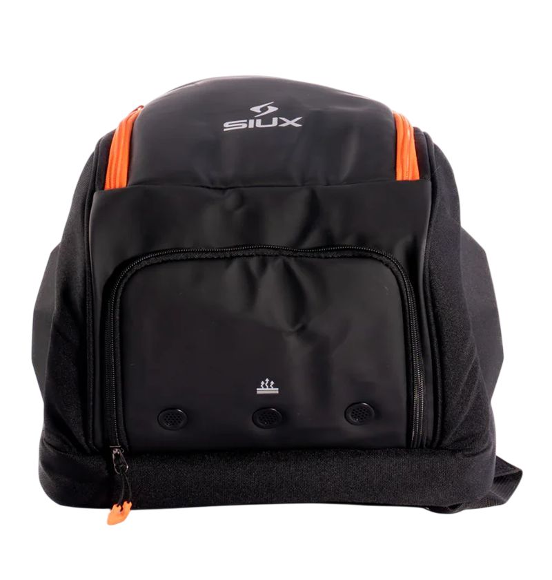 Рюкзак для падела Siux Tour 2026 - black. Очень практичный, двухкамерный рюкзак с функциональной конструкцией и жесткими боками. Одна главная камера предназначена для ракеток и разделена внутренним органайзером на две части. Внизу отдельная, вентилируемая камера для обуви или мокрой одежды. Две внешние карманы для аксессуаров, закрывающиеся на молниях. Две регулируемые лямки с мягкой спиной и ручкой для установки в вертикальное положение обеспечат комфорт переноски.
