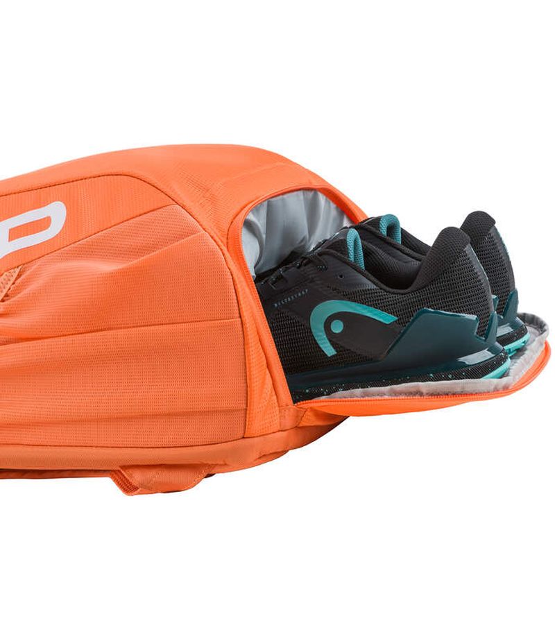 Рюкзак Head Tour 25L - orange. Рюкзак имеет две каморы, одна из которых позволяет поместить ракетку (оснащена специальным чехлом на ручку). Вторая камора предназначена для вещей, необходимых на корте. Отдельная камора для обуви. Три внешних кармана для аксессуаров - два сетчатых и один закрывающийся на молнию. Две регулируемые лямки - эргономичные и удобные. Мягкие лямки и задняя часть рюкзака гарантируют комфорт даже при длительном ношении. Ручка для установки рюкзака вертикально. Объем: 25 литров.
