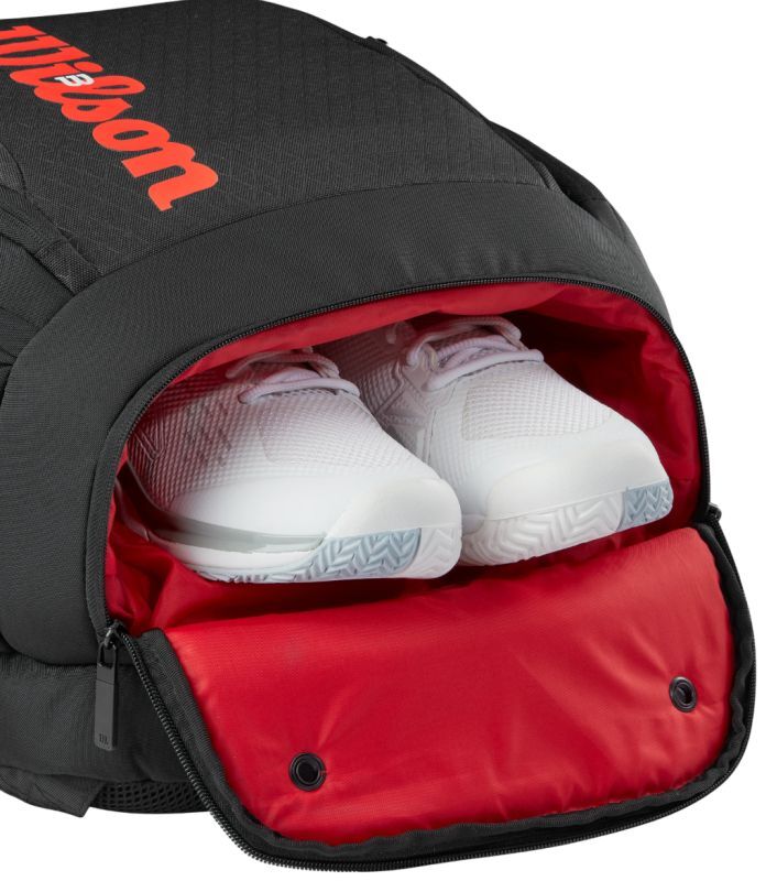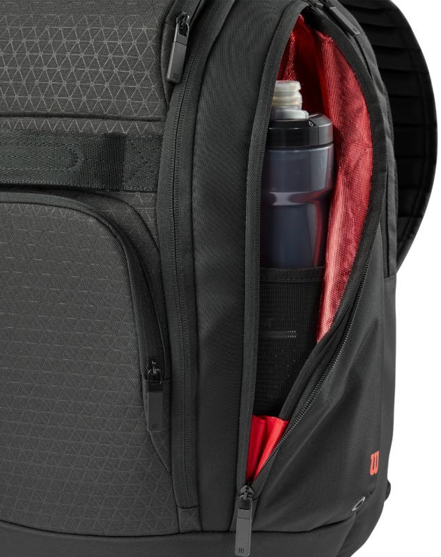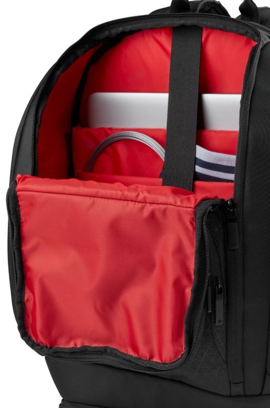 . Невероятно вместительный и практичный рюкзак. Имеет две основные камеры, закрывающиеся на молнии. Первая камера позволяет поместить до двух теннисных ракет. Вторая, более крупная камера, оснащена множеством внутренних организаторов, включая для ноутбука и дополнительных аксессуаров. Отдельная, вентилируемая камера для обуви или мокрой одежды. Четыре внешних кармана для аксессуаров на молнии - два по бокам и два спереди, все с внутренними карманами, облегчающими поддержание порядка. Правый карман имеет термоизоляционную защиту для поддержания температуры напитков. Одна из передних карманов выстлана поляром, обеспечивающим большую защиту личных и ценных предметов. Две регулируемые лямки - эргономичные и удобные. Выстланные лямки и задняя часть рюкзака гарантируют комфорт даже при длительном ношении. Ручка для установки рюкзака в вертикальном положении. Карabinер, расположенный сзади рюкзака, облегчает крепление рюкзака к ограждению корта. Высокое качество изготовления и используемых материалов.Характеристики