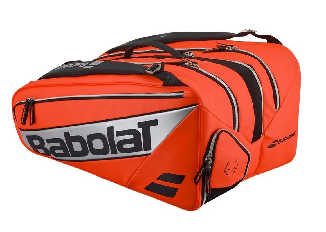 Сумка для Падел Babolat Pro Padel Juan Lebron 2nd Gen - orange/black. Практичная и вместительная сумка для падела с уникальным графическим мотивом, отсылающим к коллекции Juana Lebrona! Имеет три основные камеры, две из которых предназначены для хранения ракеток. Средняя камера вместит одежду вместе с остальным оборудованием и имеет внутренние карманы на молниях. Два боковых кармана для аксессуаров застегиваются на молниях и оснащены внутренними органайзерами. Отдельная камера для обуви или мокрой одежды. Две регулируемые лямки и ручка для вертикального положения обеспечат удобное использование и переноску сумки. Вся конструкция выполнена из прочного, износостойкого материала с жесткими боками.
