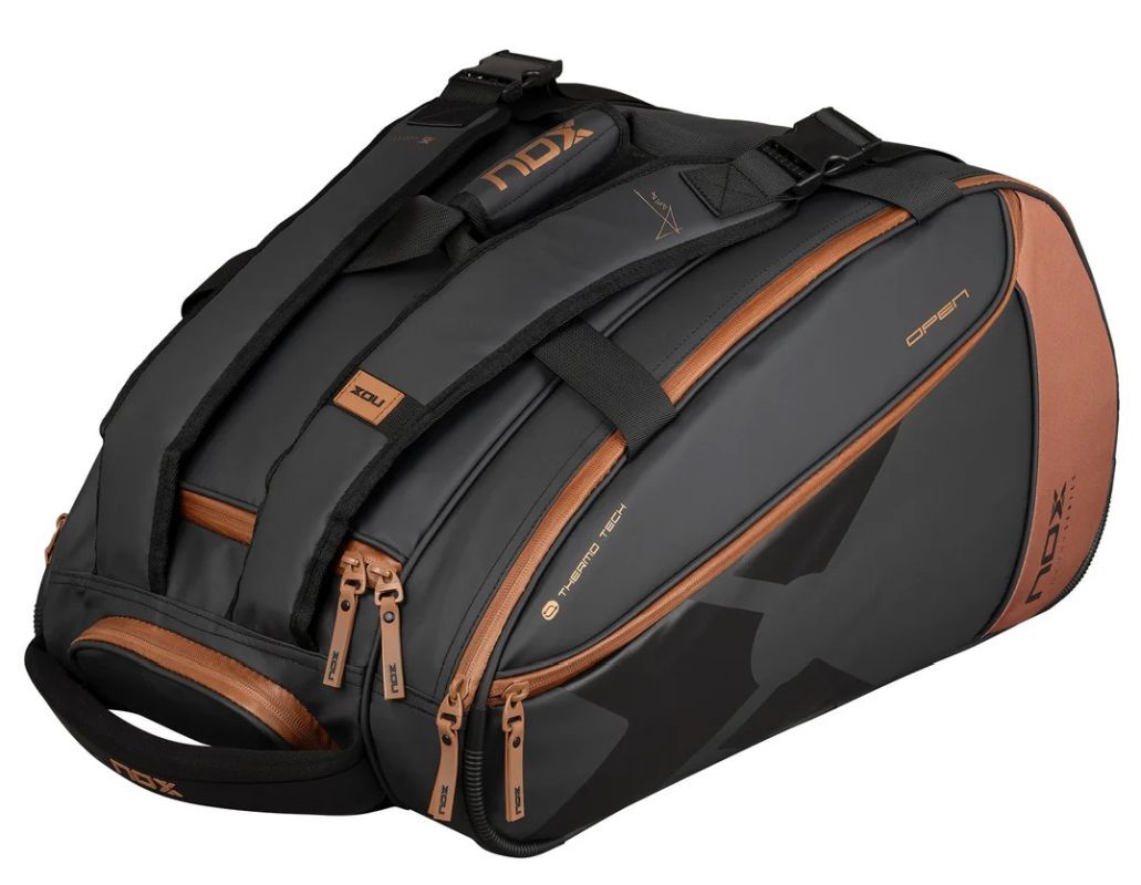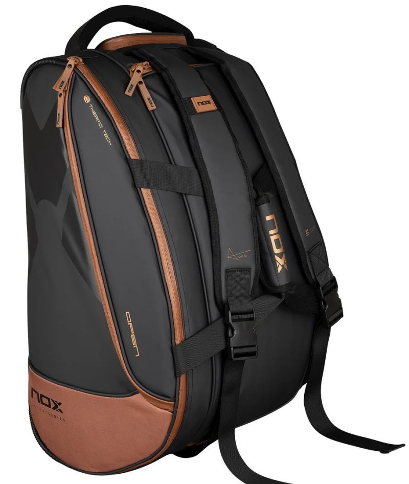 Сумка для Падел NOX Luxury Open Series — элегантная, функциональная и вместительная сумка для падел. Имеет два основных отделения: одно из них термоактивное и вмещает до двух ракеток, а другое, очень большое отделение, обеспечивает много места для остального снаряжения и одежды. По обеим сторонам сумки от tennis-24.ru расположены вместительные карманы для аксессуаров, дополнительный маленький карман внизу. Отдельное, вентиляционное отделение предназначено для обуви или мокрой одежды. Сумка оснащена двумя лямками для ношения в виде рюкзака, складными ручками и ручкой для переноски в руке. Изготовлена из высококачественных, прочных материалов, которые очень хорошо держат форму.