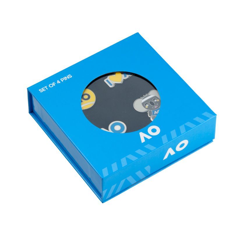 Брелок Australian Open Set of 4 Pins. Набор из 4 металлических значков с графическим мотивом, связанным с турниром Большого шлема Australian Open. Значки отлично подойдут в качестве украшения теннисной сумки или рюкзака. Идеальный брелок для фанатов турнира и тенниса.