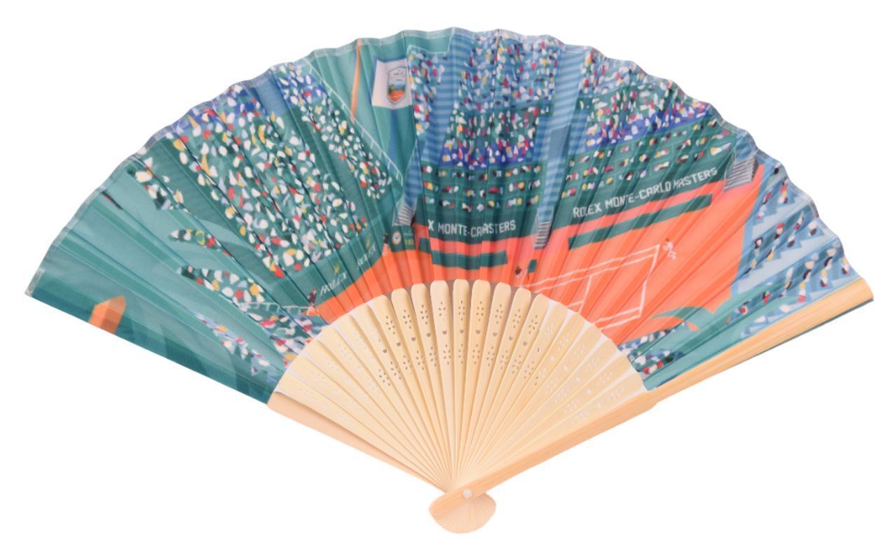 Веер Monte-Carlo Rolex Masters Fan. Маленький, деревянный и компактный веер с графическим мотивом, связанным с турниром Rolex Monte Carlo Masters. Идеально подойдет для жарких дней. Отличный брелок для фанатов турнира и самого тенниса.