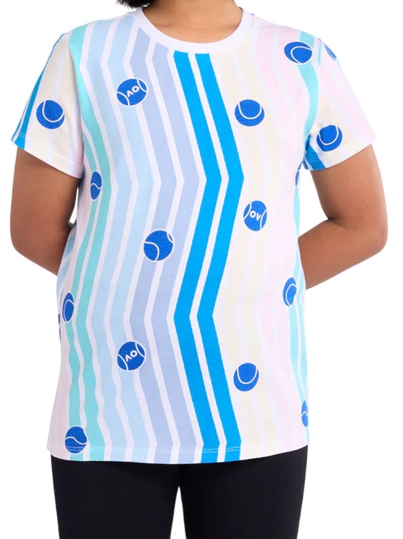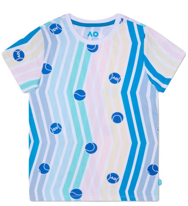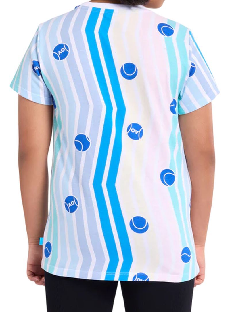 Девчачья футболка Australian Open Down The Line. Классическая модель с обычным кроем, выполненная из 100% хлопкового материала. Футболка изготовлена из приятной на ощупь и комфортной ткани, обеспечивающей высокий комфорт и удобство ношения. Магазин tennis-24.ru предлагает эту модель, выполненную из слегка эластичного материала, который гарантирует хорошее прилегание к фигуре и свободу движений. На футболке использован теннисный мотив в виде мячей и нанесенного на них логотипа турнира Большого шлема Australian Open.