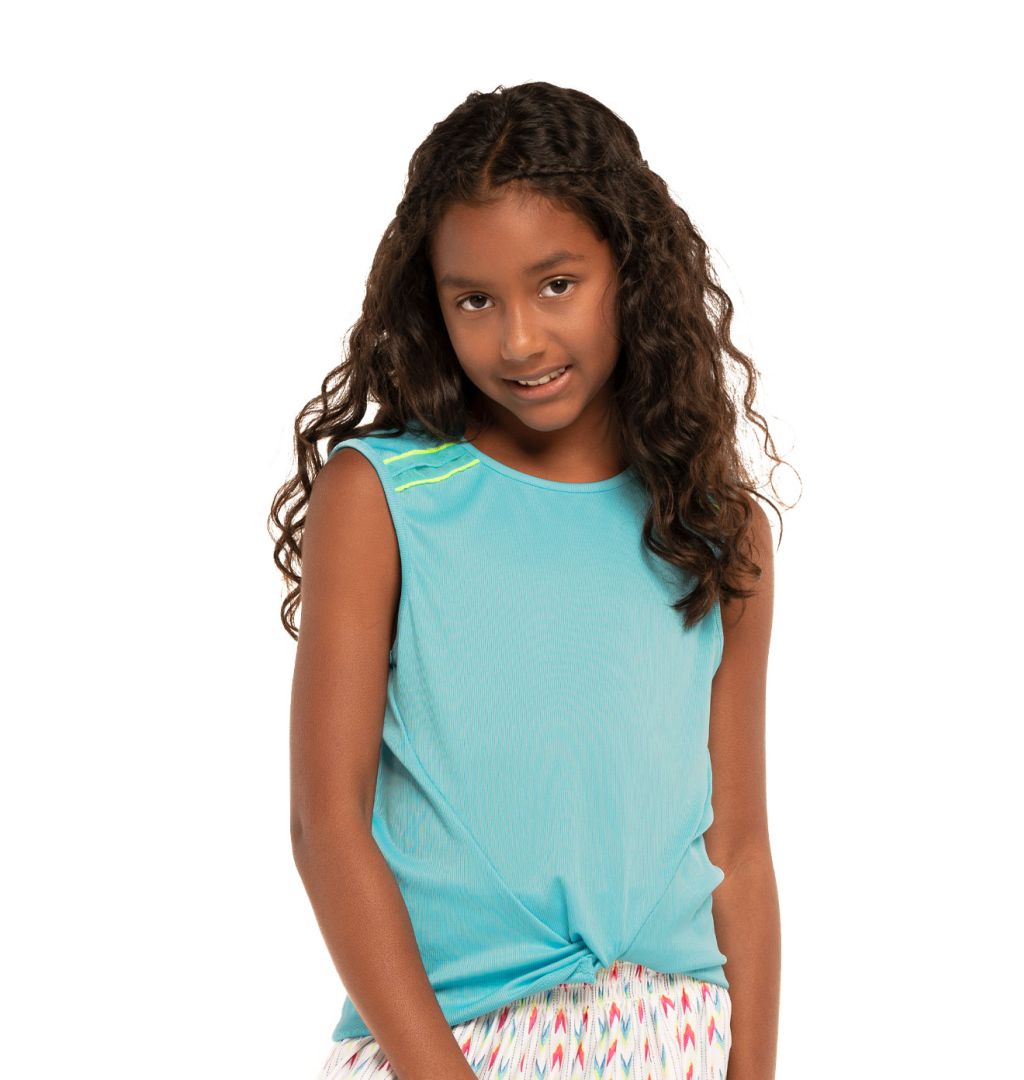 Девочий теннисный топ Lucky in Love Desert Vibes Twist Front Tank - sky. Эластичные бретельки обеспечивают комфорт игры. Зоны панели из сетки увеличивают вентиляцию. Топ выполнен из дышащего материала.
