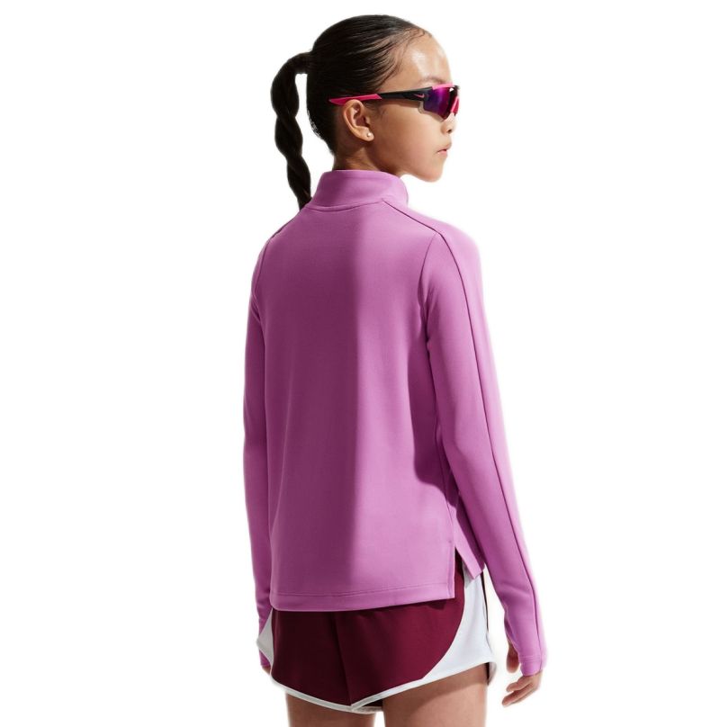 Девочая футболка с длинным рукавом Nike Girls Dri-FIT Long-Sleeve 1/4-Zip - light magenta/white. Футболка выполнена из легкой, воздухопроницаемой ткани, застегивается на молнию под горло. Материал с мягкой эластичностью отлично приспосабливается к движениям. Высокий воротник и удлиненная спинка обеспечат комфорт и защиту во время активности, а плоские швы сведут к минимуму риск натирания. Мягкие разрезы по бокам увеличивают диапазон движений. На концах рукавов отверстия для пальцев. Высокое качество исполнения и используемых материалов с применением технологии DRI-FIT.
