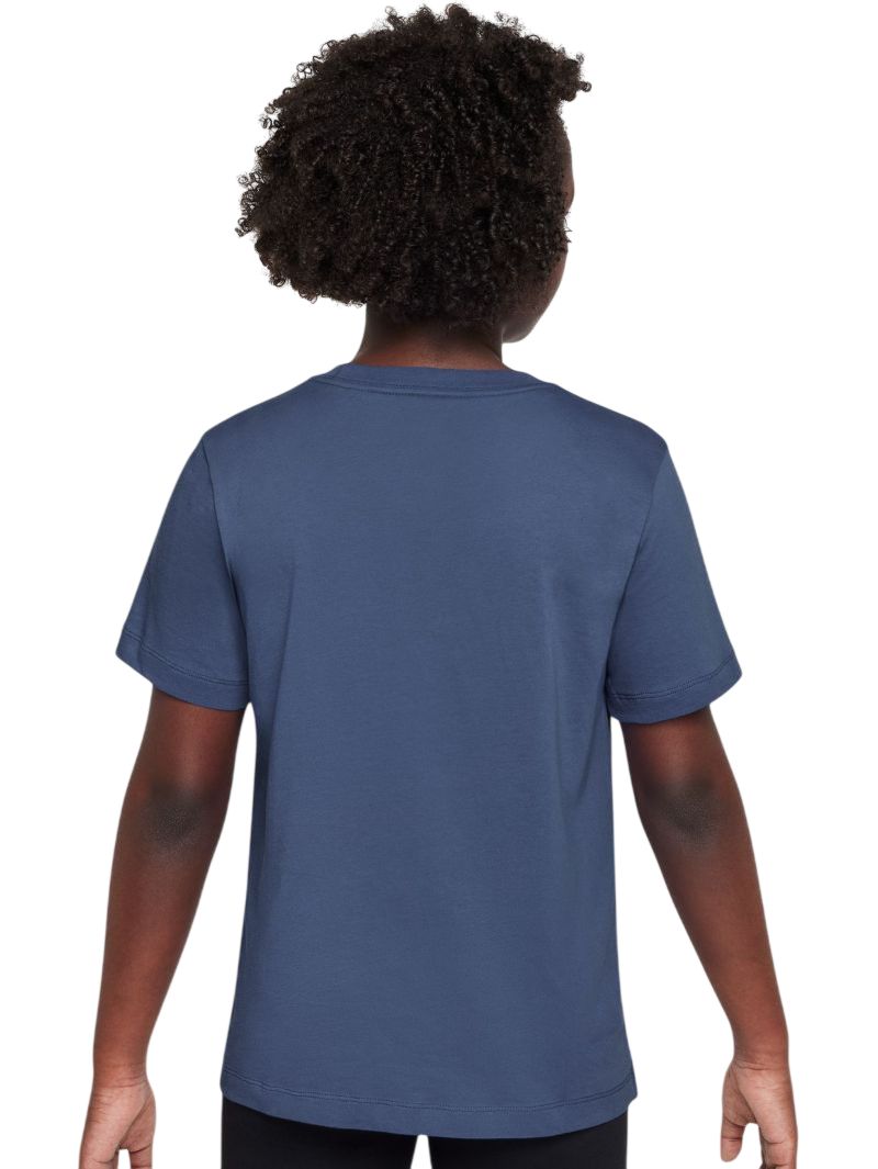 Мальчишечья T-shirt Nike Boys Sportswear - mystic navy. Классическая футболка, выполненная на 100% из хлопкового материала, обеспечит высокий комфорт носки. Простой, регулярный крой обеспечит свободу движений. Круглый, рифлёный воротник для большего удобства. Классическое, вышитое лого производителя с левой стороны.