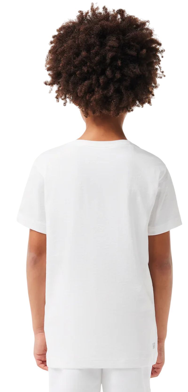 Мальчиковая футболка Lacoste Oversized Tennis с большим логотипом. Классический и простой дизайн, обычный крой. Выполнена из приятного на ощупь и комфортного джерсейного материала. Смесь хлопка и полиэстера обеспечивает высокий комфорт при носке. Плоские швы минимизируют риск натираний и раздражений. Магазин tennis-24.ru предлагает эту футболку, украшенную большим логотипом производителя. Высокое качество изготовления с применением технологии ULTRA DRY.