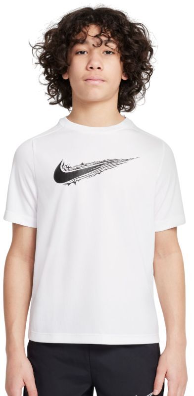 Мужская футболка Nike Boys Multi Dri-FIT с короткими рукавами - белая/черная. Футболка классического кроя. Изготовлена из приятной на ощупь ткани, обеспечивающей высокий комфорт и удобство ношения. Немного эластичный материал подстраивается под движения, обеспечивая максимальную свободу. Логотип производителя размещен в центральной части. Футболка изготовлена из дышащей ткани с использованием технологии Dri-FIT.