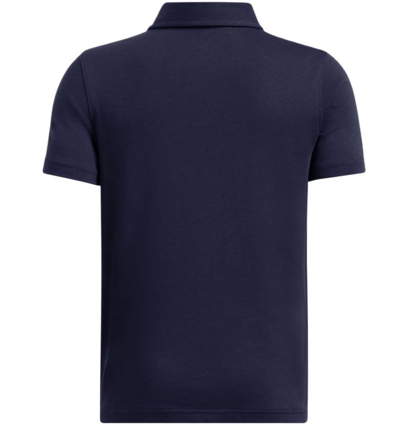 Мальчиковое polo Under Armour Icon - midnight navy/white. Классическое поло с застежкой на 2 пуговицы у горла, выполненное в простом, обычном крое. Легкоэластичный материал хорошо прилегает к телу, обеспечивая свободу движений. Магазин tennis-24.ru предлагает этот товар для активных мальчиков. Разрезы внизу футболки позволяют увеличить диапазон движений при ношении, а слегка удлиненная спинка обеспечивает защиту и лучший комфорт. Вышитое лого с левой стороны.