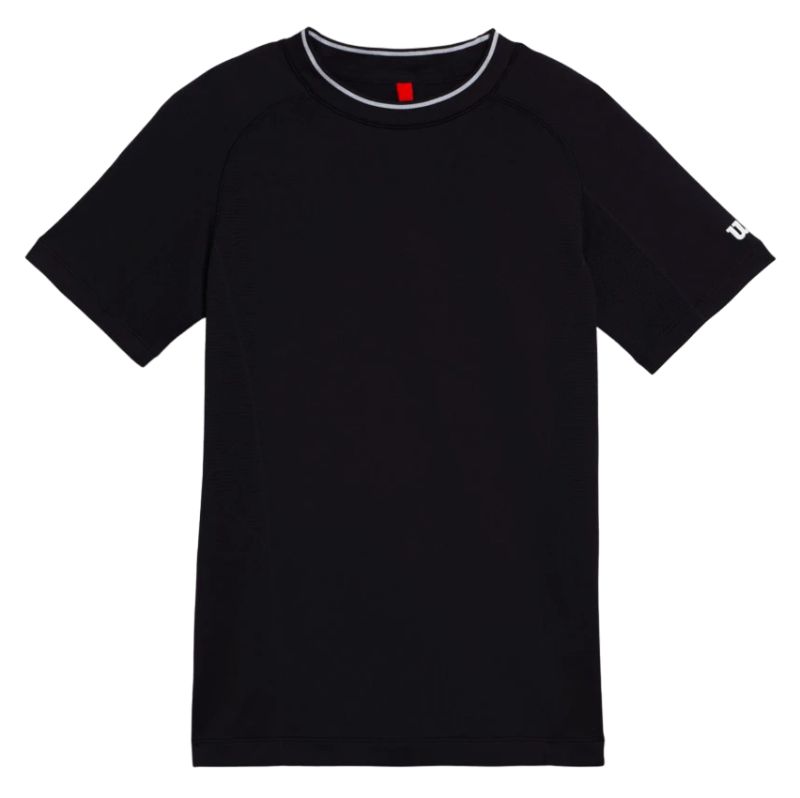 Мальчишечья T-shirt Wilson Kids Team Seamless Crew - black. Классическая, простая T-shirt стандартного кроя. Изготовлена из легкой и комфортной, технической ткани высокой производительности. Материал слегка эластичный, быстро сохнет и эффективно отводит влагу. Рагланные рукава предотвращают образование натираний. Бесшовная конструкция футболки обеспечит еще больший комфорт и удобство во время активности. Перфорированные зоны на спине и под мышками обеспечивают отличную воздухопроницаемость. Идеальный выбор для всех видов физической активности.