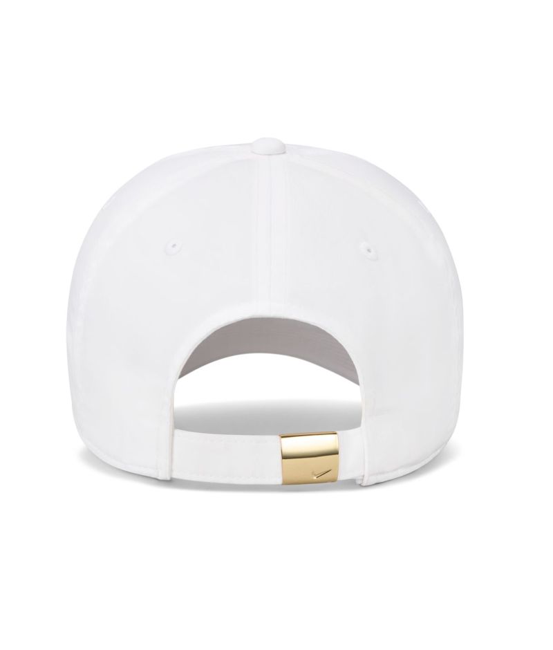 Кепка Nike Dri-Fit Club Unstructured Metal Swoosh - white/metallic gold. Классический простой дизайн и исполнение. В верхней части отверстия, увеличивающие циркуляцию воздуха. Кепка регулируется на металлический застежку, находящуюся в задней части. Спереди видимый логотип Nike. Выполнена с применением технологии: DRI-FIT.