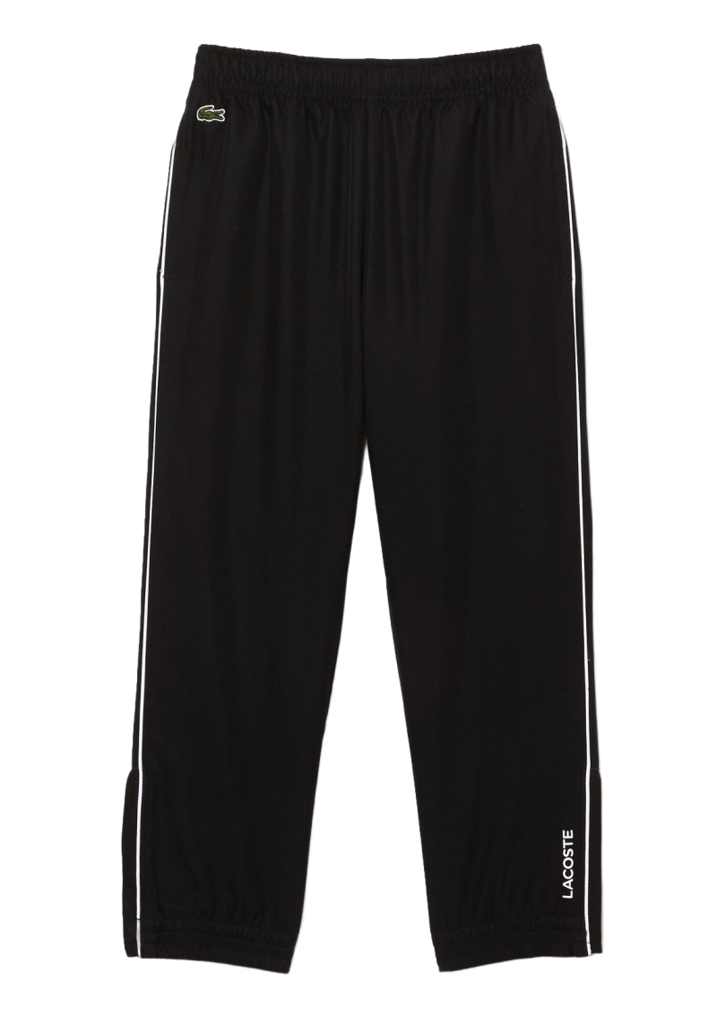 Мальчиковые брюки Lacoste SPORT Trackpants - black. Эластичный материал на поясе вместе со шнурком позволяет идеально подогнать. На сайте tennis-24.ru вы найдете эти брюки с манжетами на ногах, которые можно частично расстегнуть. Два боковых кармана. Приятный на ощупь и комфортный полиэстеровый материал.