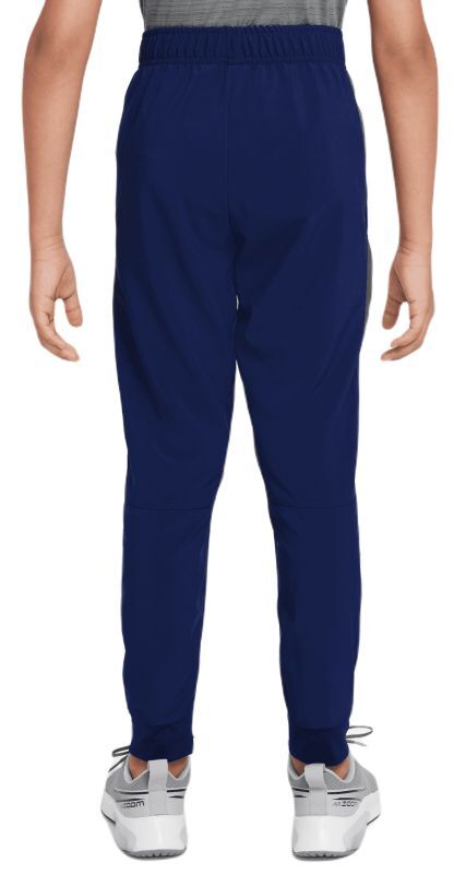Теннисные брюки Nike Dri-Fit Boys Woven Pant - blue void. Эластичная резинка на поясе вместе со шнурком обеспечивают идеальную посадку. Два боковых кармана. На сайте tennis-24.ru вы найдете эти брюки, выполненные из дышащего материала с применением технологии DRI-FIT.