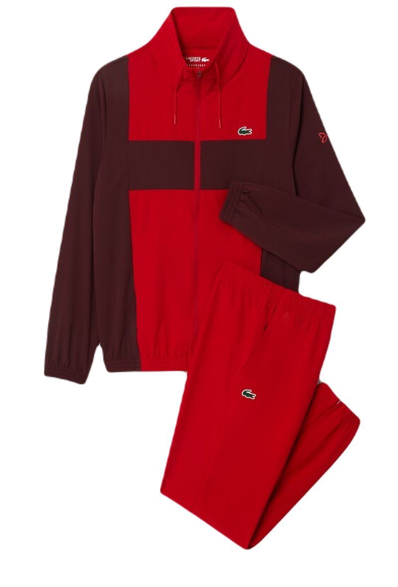 Мужской спортивный костюм Lacoste Tennis x Novak Djokovic - бордовый. Состоит из комплекта толстовки и брюк спортивного костюма с простым, классическим кроем. Изготовлен из прочной и эегантной полиэстеровой тафты. Отсутствие внутренней подкладки делает материал легким, дышащим и эффективно отводящим влагу. Толстовка застегивается на молнию по всей длине и имеет два закрывающихся боковых кармана с внутренней сеткой. Повышенный воротник с шнурковыми затяжками обеспечивает дополнительную защиту. На сайте tennis-24.ru вы найдете этот костюм, который идеально подойдет для спорта и повседневной носки. Рукава и низ заканчиваются эластичными манжетами, позволяющими индивидуально подогнать изделие. Брюки оснащены эластичным поясом с регулируемыми шнурками. Имеют два открытых боковых кармана и манжеты на ногах. Костюм из коллекции, созданной специально для Новака Джоковича, отлично подходит как для активного отдыха, так и для повседневного использования. Использованы технологии: ULTRA DRY, STRETCH.