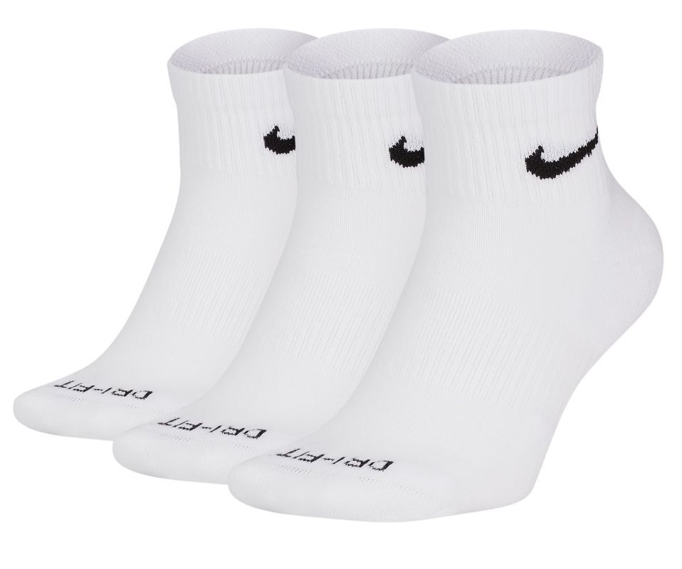 Носки Nike Everyday Plus Cushioned Training Ankle 3P - white/black. Высокий комфорт игры в любых условиях. Толстый хлопковый слой в области пятки и пальцев обеспечивает дополнительное удобство при движении и оптимальную амортизацию. Волокна во вкладыше предотвращают соскальзывание носков. Магазин tennis-24.ru предлагает только оригинальные товары. Верх выполнен с эластичными манжетами для лучшей посадки. Носки изготовлены из дышащего, быстро сохнущего материала с использованием технологии DRI-FIT. В упаковке три пары в разных цветовых вариантах.
