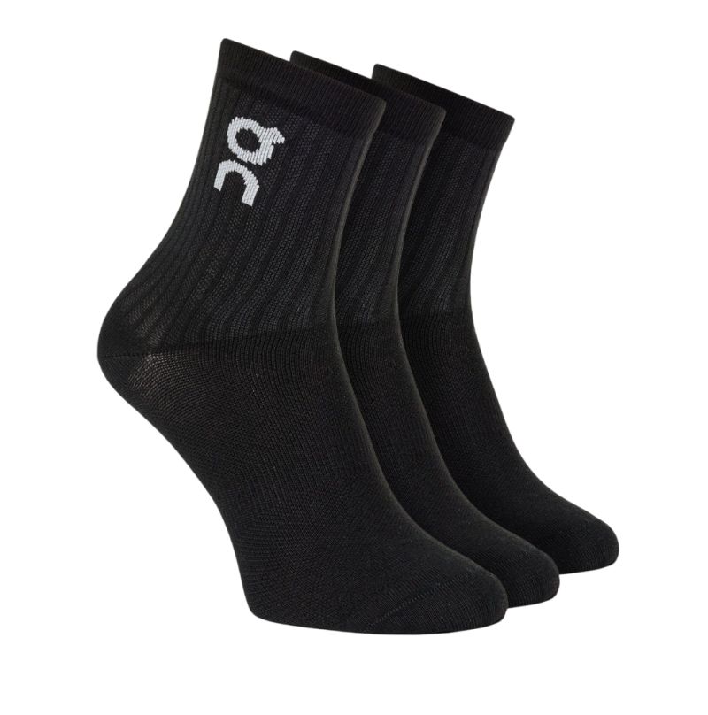 Носки On Logo High 3P - black. Комфортные носки, изготовленные из мягких материалов, идеально подойдут для повседневных активностей. Обладают усиленными зонами в области пальцев и пятки, которые особенно подвержены истиранию. Отличная амортизация. Рубчатая отделка с вентиляционными зонами обеспечит высокую воздухопроницаемость. Верх, отделанный эластичной манжетой, предотвращает сползание. Упаковка содержит три пары носков.