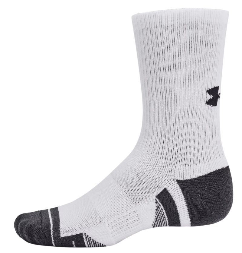 Носки Under Armour Performance Tech Crew 6P - white/jet gray. Материал отводит влагу, обеспечивая сухость, легкость и вентиляцию. Стратегическое размещение амортизации для лучшей гибкости. Динамическая поддержка свода стопы уменьшает её усталость. Вентиляционные каналы увеличивают воздухопроницаемость.