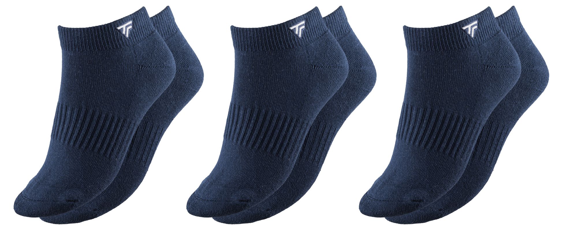 Теннисные носки Tecnifibre Low Cut 3P - marine. Обеспечивают большой комфорт игры в любых условиях. Обеспечивают поддержку благодаря эластичному сборению на своде стопы. Подошва усилена материалом. Очень хорошая воздухопроницаемость. Ребристая отделка обеспечит идеальное прилегание. Упаковка содержит 3 пары.