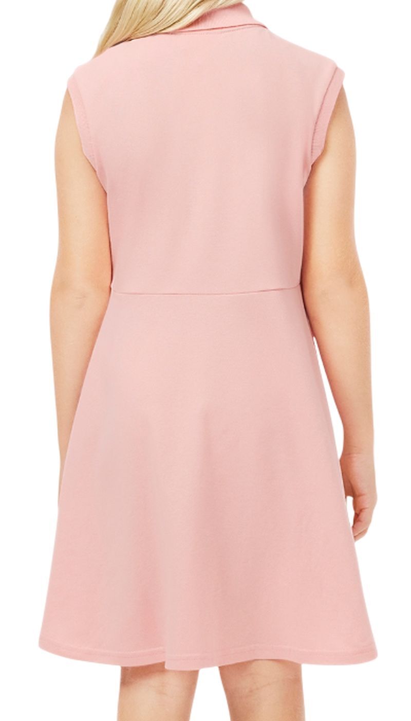 Девчачье платье Lacoste Girls’ Fit and Flare Stretch Piqu_ Polo - waterlily pink. Стильное, слегка расклешенное платье с воротником поло, застегивающимся под шеей на две пуговицы. Отсутствие рукавов обеспечивает больший диапазон и свободу движений. Платье выполнено из хлопкового материала, обеспечивающего высокий комфорт и удобство ношения. Магазин tennis-24.ru гарантирует высокое качество использованных материалов. Платье украшено вышитым логотипом производителя с левой стороны.