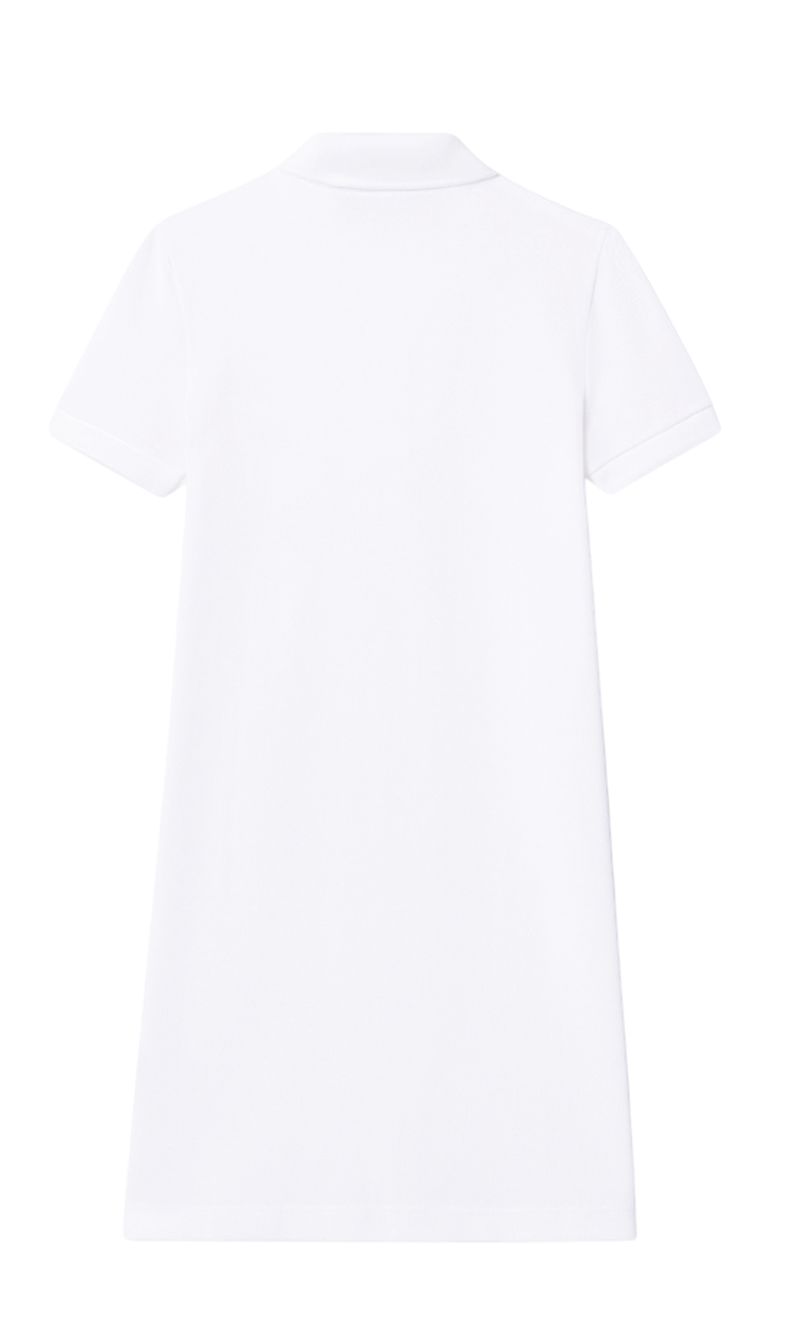 Девоечье платье Lacoste Pique Polo. Простое, классическое платье с воротником-поло, застегивающимся под шеей на две пуговицы. Рукава завершены рифлёной, зауженной тканью для улучшения посадки. Платье выполнено из 100% хлопкового материала, обеспечивающего высокий комфорт и удобство ношения. Высокое качество используемых материалов. Маленький карманчик с вышитым логотипом слева.