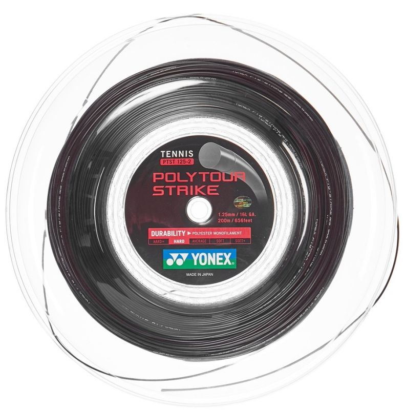 Yonex Poly Tour Strike (200 m) - black. Струны теннисные Yonex Poly Tour Strike. Идеальный выбор для агрессивно играющих игроков. Очень низкий и медленный спад свойств струн. Очень хороший контроль и ощущение, при обеспечении необходимой в современном теннисе мощности ударов. Эту модель используют Caroline Garcia и Denis Shapovalov.