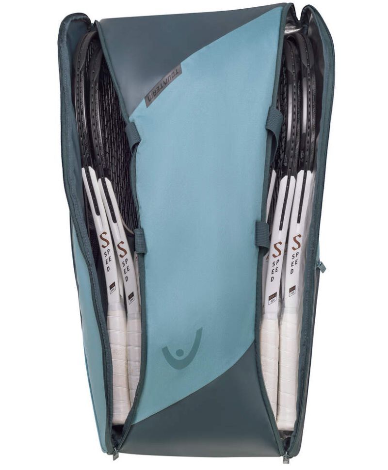 Он может вместить до девяти ракет. Имеет два основных отделения. Один, предназначенный для ракеток, имеет термоизоляционную защиту благодаря использованию ТЕХНОЛОГИИ КЛИМАТ-КОНТРОЛЯ. Второе, основное отделение оснащено внутренним сетчатым органайзером. Два регулируемых и удобных плечевых ремня. Складные ручки позволяют носить сумку в руке. Ручка для вертикального положения сумки. Емкость: 82л.