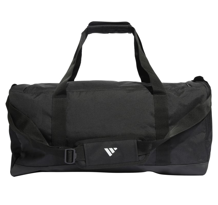 Сумка Adidas Linear Duffel - black. Практичная спортивная сумка объемом 39,75 литров. Имеет одну главную камеру, закрывающуюся на двойную молнию. Два внешних кармана для аксессуаров - один на молнии, второй, сетчатый, с открытым доступом. Отдельная камера для обуви или мокрой одежды. Регулируемый плечевой ремень и две ручки с возможностью соединения позволят удобно переносить сумку.