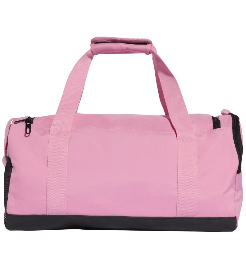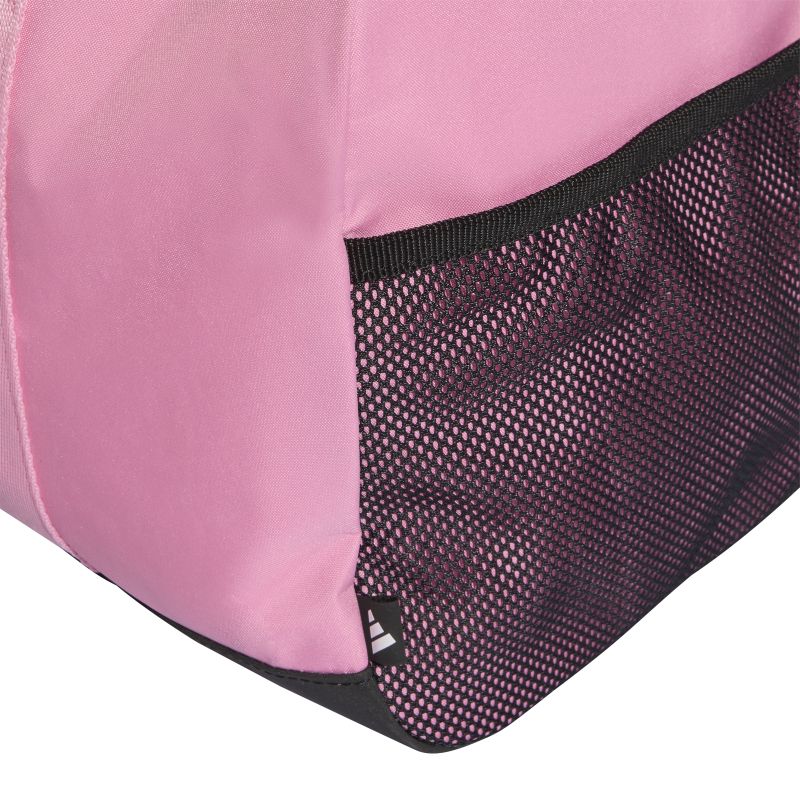 Сумка Adidas Linear Duffel Small - pink/white. Небольшая, практичная спортивная сумка объёмом 24 литров. Имеет одну главную камеру, закрывающуюся на двойную молнию. Две внешние кармана для аксессуаров - один на молнии, второй сетчатый с открытым доступом. Отдельная камера для обуви или мокрой одежды. Регулируемый плечевой ремень и две ручки с возможностью соединения позволят удобно переносить сумку.