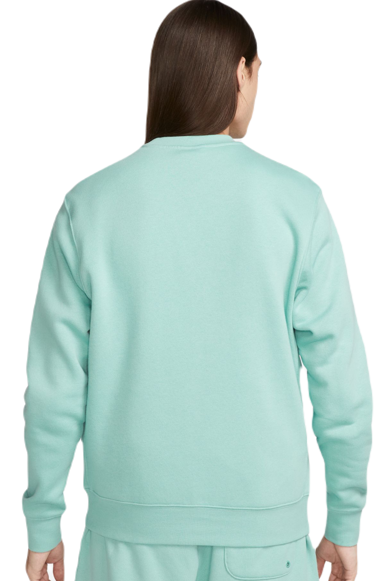 Мужская толстовка Nike Swoosh Club Crew - mineral/white. Классическая спортивная толстовка с вышитым логотипом Nike на груди. Изготовлена из мягкого и приятного на ощупь флиса с начёсом. Резинки вокруг низа и манжет обеспечивают хорошую посадку по фигуре.