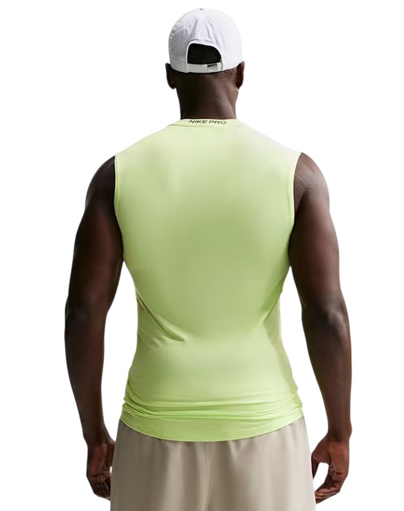 Теннисная футболка Nike Pro Dri-Fit Tight Sleeveless Fitness - light liquid lime/black. Легкая компрессионная футболка облегающего кроя из тренировочной коллекции Nike Pro. Эластичный материал адаптируется к движениям, а закругленный подол обеспечивает высокий комфорт во время активности. Плоские швы минимизируют риск натираний и раздражений. T-shirt выполнена из дышащего материала с технологией DRI-FIT.