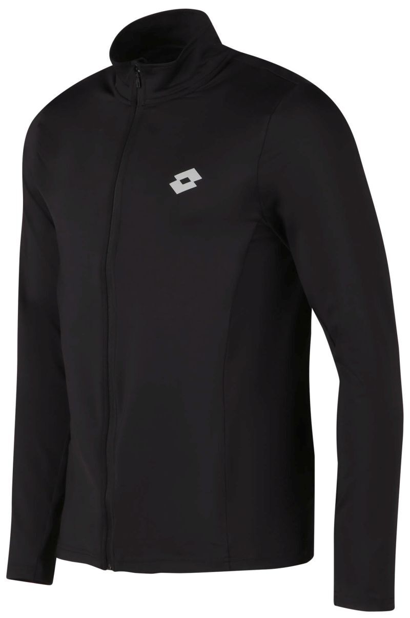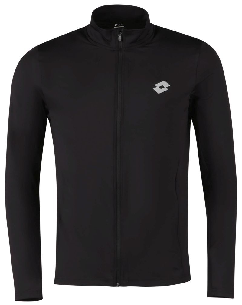 Мужская толстовка Lotto Running Sweat Full Zip - all black. Толстовка на всю длину застегивается на молнию. Высокий воротник обеспечивает комфорт и защиту. Изготовлена из эластичного, растягивающегося материала, представлена на tennis-24.ru. Логотип производителя на левой груди. Изготовлена из высококачественных материалов с использованием технологии: STRETCH.