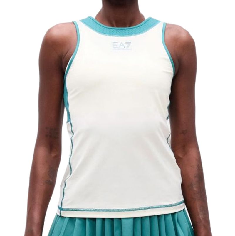 Женский топ EA7 Tennis Jersey In Ventus7 - hydro/tofu. Простой, эластичный топ хорошо прилегает к телу, обеспечивая комфорт и свободу движений во время активности. Широкие вырезы на плечах позволят больший диапазон движений, а утолщенные бретельки гарантируют комфорт. Стратегически расположенные перфорации на топе обеспечат лучшую воздухопроницаемость. Плоские швы уменьшают риск натираний и раздражений. Высокое качество исполнения и используемых материалов. Топ выполнен с использованием технологии: VENTUS7.