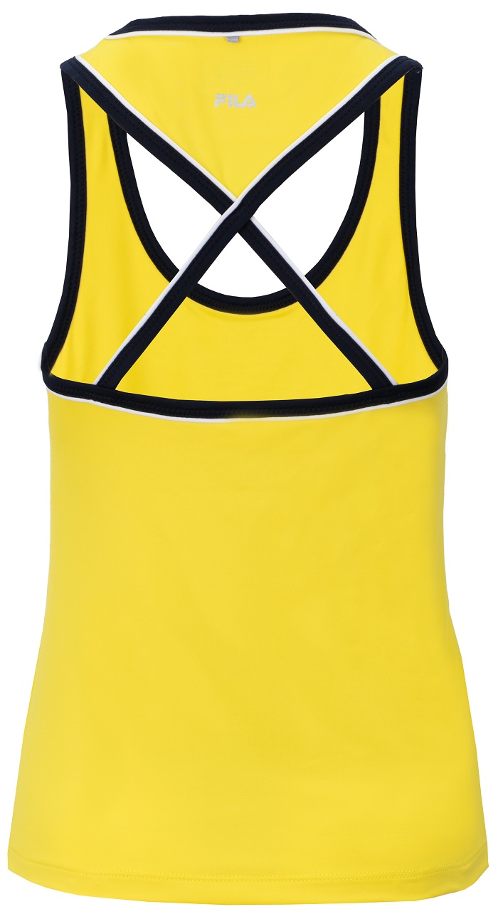 Топ теннисный Fila Top Jodie - buttercup. Сделан из дышащего, хорошо отводящего влагу и мягкого на ощупь материала. Классический дизайн и отделка. Эластичные бретельки повышают комфорт игры. Встроенный спортивный теннисный бюстгальтер. Топ произведен из переработанных материалов, с применением технологий: Quick Dry, Breathable, Soft Touch, Dry Comfort, High Wearing Comfort. Топ из коллекции, выбранной лучшими теннисистками, в том числе Каролиной Плишковой.