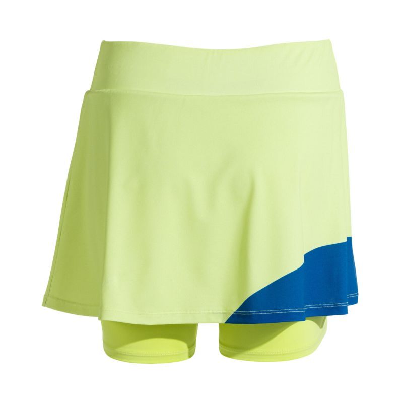 Женская юбка Joma Torneo - lime blue изготовлена из легкого, дышащего материала с широким поясом, обеспечивающим комфорт при ношении, а эластичная резинка позволяет хорошо подогнать по фигуре. На сайте tennis-24.ru вы найдете эту модель с встроенными внутренними спортивными шортами, которые плотно прилегают к телу, обеспечивая поддержку и удобство во время активности. Использованные плоские швы минимизируют риск натираний и раздражений.