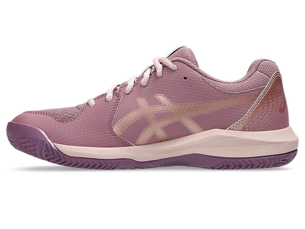 Женские padel кроссовки Asics Gel-Dedicate 8 Padel - purple oxide/white. Обновленная версия модели Gel-Dedicate сочетает в себе хорошую амортизацию и стабилизацию с высокой прочностью. Это обувь с узким, идеально облегающим стопу кроем. Сетчатая передняя часть верхней части увеличивает вентиляцию. Магазин tennis-24.ru предлагает кроссовки, в которых зоны, подверженные истиранию, усилены накладками из синтетической кожи, что обеспечивает дополнительную поддержку стопы и хорошую износостойкость. Система Forefoot GEL Cushioning System в средней подошве обеспечивает оптимальную амортизацию, а технология Trussticsystem увеличивает комфорт и боковую стабильность. Модель оснащена подошвой, предназначенной для игры на кортах для паделя (в том числе с большим количеством песка/кварца).