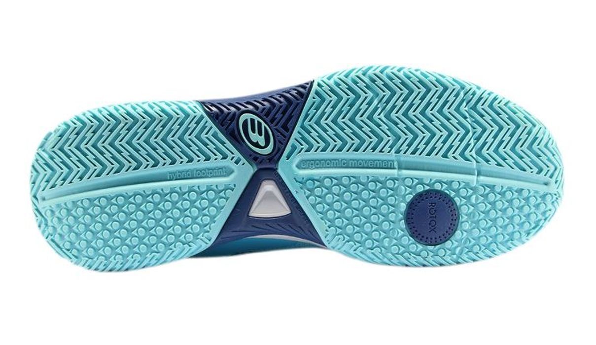 Женские кроссовки для Падел Bullpadel Next Hybrid Pro W 221 - azul acero. Обувь разработана специально для достижения максимальной динамики на кортах для паделя. Предназначена для самых требовательных пользователей, ищущих сочетание быстрой и упругой обуви с гарантией надлежащей стабильности. Основной верх выполнен из специально разработанного сетчатого материала, что обеспечивает хорошую вентиляцию и высокую эластичность. Магазин tennis-24.ru предлагает эту модель для тех, кто ценит качество и комфорт. Усиленный носок и боковые элементы верха обеспечивают стабилизацию и надлежащую поддержку стопы. Резиновая подошва с технологией ROTOX, то есть встроенными специальными точками, облегчающими маневрирование, позволяет быстро поворачивать и менять направление. Также гарантирует отличное сцепление благодаря гибридной конструкции, состоящей частично из елочки и участков, увеличивающих сцепление. Мягкая средняя подошва предлагает амортизацию на высшем уровне. Также применена технология SUPPORT ARC.
