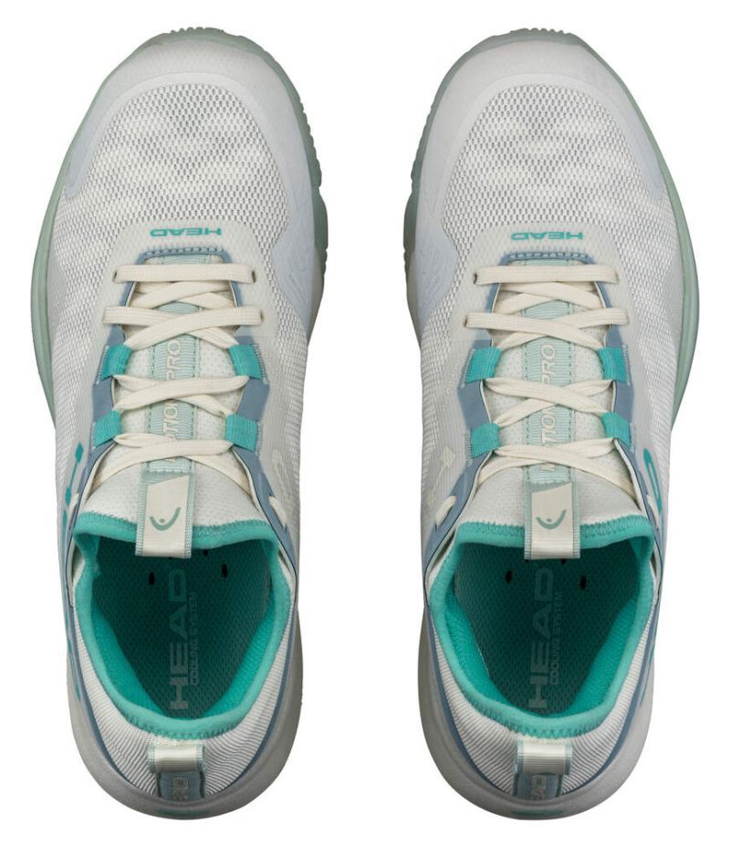 Женские кроссовки для Падел Head Motion Pro Padel - aqua/teal. Продвинутая технологически модель, созданная в сотрудничестве с профессиональными паделистами. Идеально адаптирована к потребностям и специфике передвижения на падельном корте, сочетает в себе скорость, маневренность и комфорт с отличной поддержкой стопы. Сетчатый верх с расположенной снизу системой вентиляции средней части стопы обеспечивает очень хорошую воздухопроницаемость, а система Cooling защищает от перегрева. Магазин tennis-24.ru предлагает эту модель, которая отличается встроенным внутренним носком и интегрированной системой шнуровки, предотвращающими смещение стопы и обеспечивающими отличную стабильность. Дополнительная поддержка при боковых движениях благодаря технологии LATERAL CONTROL. В уязвимых зонах пальцев и средней части обуви применены резиновые усиления для повышения прочности. Реактивная средняя подошва из пены, изготовленной из мелких пузырьков воздуха, обеспечивает высочайший комфорт игры и динамичность отскока. Протектор, разработанный и протестированный с поставщиками покрытий для паделя, предлагает феноменальное сцепление. Использованы следующие технологии: DRIFT DEFENSE, LOCKDOWN STRAP, DYNAFOAM, HEAD COOLING SYSTEM.