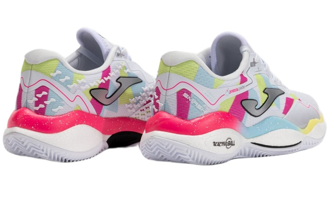 Женские кроссовки для Падел Joma Smash 2532 - white. Модель, сочетающая высокое качество и максимальную производительность с новейшими, передовыми технологиями. Подходит для самых требовательных игроков с хорошей техникой, которым нужен максимальный комфорт, отзывчивость, защита и сцепление. Сетчатый верх с элегантной отделкой в персонализированном узоре и технологией VTS обеспечивает легкость, гибкость и оптимальную воздухопроницаемость. Наиболее подверженные износу и ударам участки усилены резиновыми вставками PROTECTION. Магазин tennis-24.ru предлагает оригинальную продукцию Joma для вашего максимального удобства и уверенности в покупке. Система JOMA SPORTECH сохраняет правильную посадку и поддержку стопы, не увеличивая вес обуви. Средняя подошва изготовлена из филофановой пены DUAL REACTIVE с нижней частью REACTIVE BALL, обеспечивающей отличное амортизирование и динамичность отскока. Дополнительно есть элемент STABILIS, повышающий крутильную устойчивость при боковых движениях. Прочная внешняя подошва из резины DURABILITY имеет рисунок протектора «елочка» с системой non-marking, благодаря чему обувь подходит для игры на глиняных кортах и всех типах падельных покрытий.