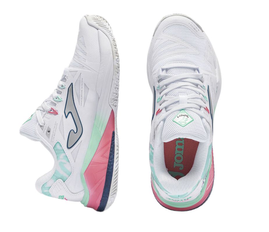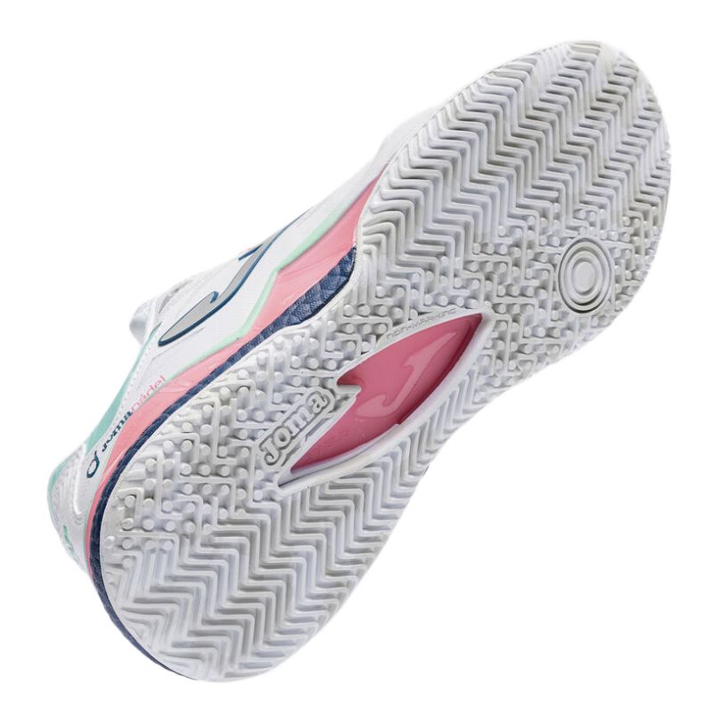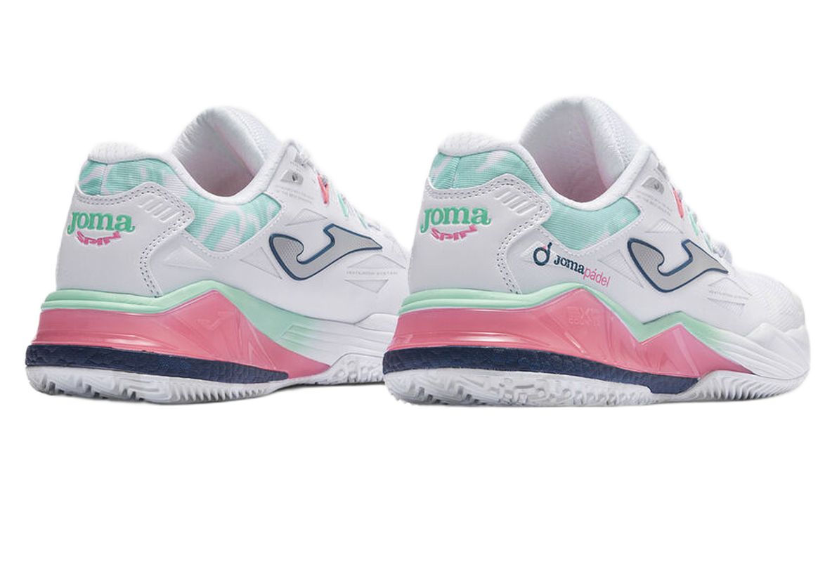 Женские кроссовки для Падел Joma Spin Lady 2602 - white. Высококлассная модель, обеспечивающая максимальный уровень амортизации и стабильности на корте для падела. Верх выполнен из сетчатого материала VTS, отвечающий за оптимальную воздухопроницаемость и вентиляцию. Кроме того, её бесшовная конструкция в технологии Sportech обеспечивает лучшее прилегание к стопе, а наиболее подверженные износу зоны усилены системой Protection. Средняя подошва из лёгкой пены Phylon обеспечивает как хорошую амортизацию, так и необходимую для быстрых перемещений реактивность. Система STABILIS предотвращает скручивание стопы в обуви, повышая боковую стабильность и дополнительно защищая от травм. Прочная внешняя подошва non-marking из резины DURABILITY имеет протектор, адаптированный для игры на покрытиях падела.