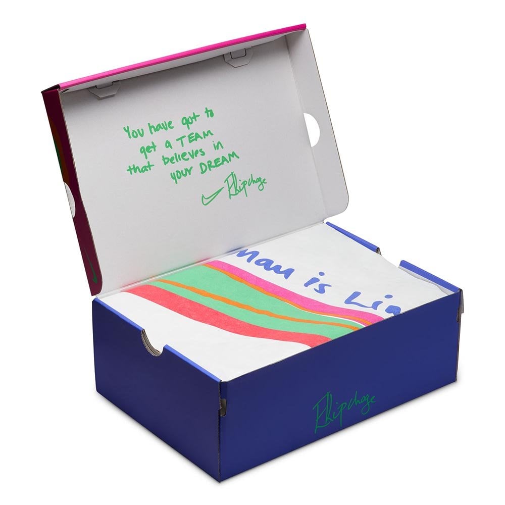 Модели этой коллекции привлекают внимание интенсивными цветами – которые символизируют энергию, смелость и мотивацию к преодолению собственных границ. Коллекцию дополняют специальные коробки с цветными блоками и вдохновляющими надписями, включая послание Кипчоге: «Ты должен найти команду, которая верит в твои мечты». Это не только мужские беговые кроссовки, но также манифестация ценностей, стоящих за успехом одного из величайших спортсменов наших времен – веры, настойчивости и силы команды.