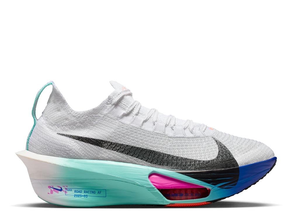В третьей версии Alphafly изменен внешний вид, подчеркивающий большую динамику. Платформа подошвы унифицирована, соединенная пена ZoomX обеспечивает отличную стабильность и амортизацию, что повышает комфорт во время бега. Две воздушные камеры Air Zoom, расположенные в передней части кроссовка, в сочетании с пеной ZoomX увеличивают возврат энергии при каждом шаге. Также присутствует полноразмерная, слегка расширенная карбоновая пластина Flyplate, которая обеспечивает максимальную динамику и позволяет уверенно и плавно выполнять шаги даже во время самого интенсивного бега.