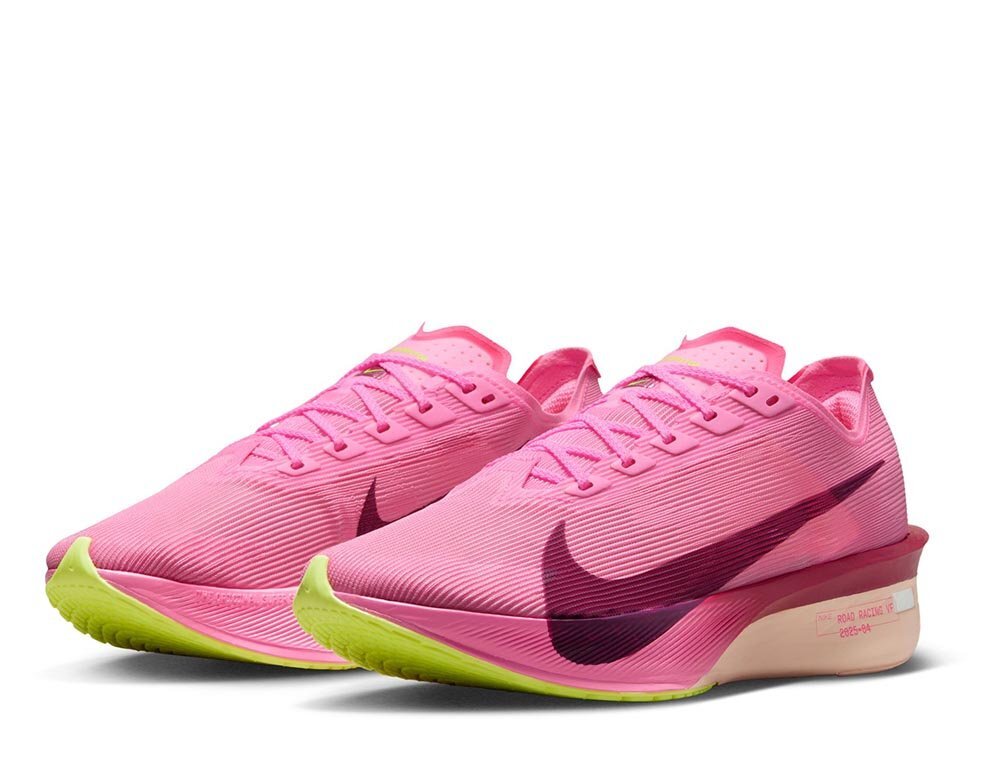 В межподошве находится полноразмерная пластина Flyplate из углеродного волокна с большим углом наклона, обеспечивающим лучший толчок и упругость на каждом шаге. Дополнительно использована более легкая пена ZoomX, увеличивающая отдачу энергии, а за счет снижения высоты межподошвы Vaporfly 4 обеспечивает более стабильный бег и еще больший комфорт на длинных дистанциях.